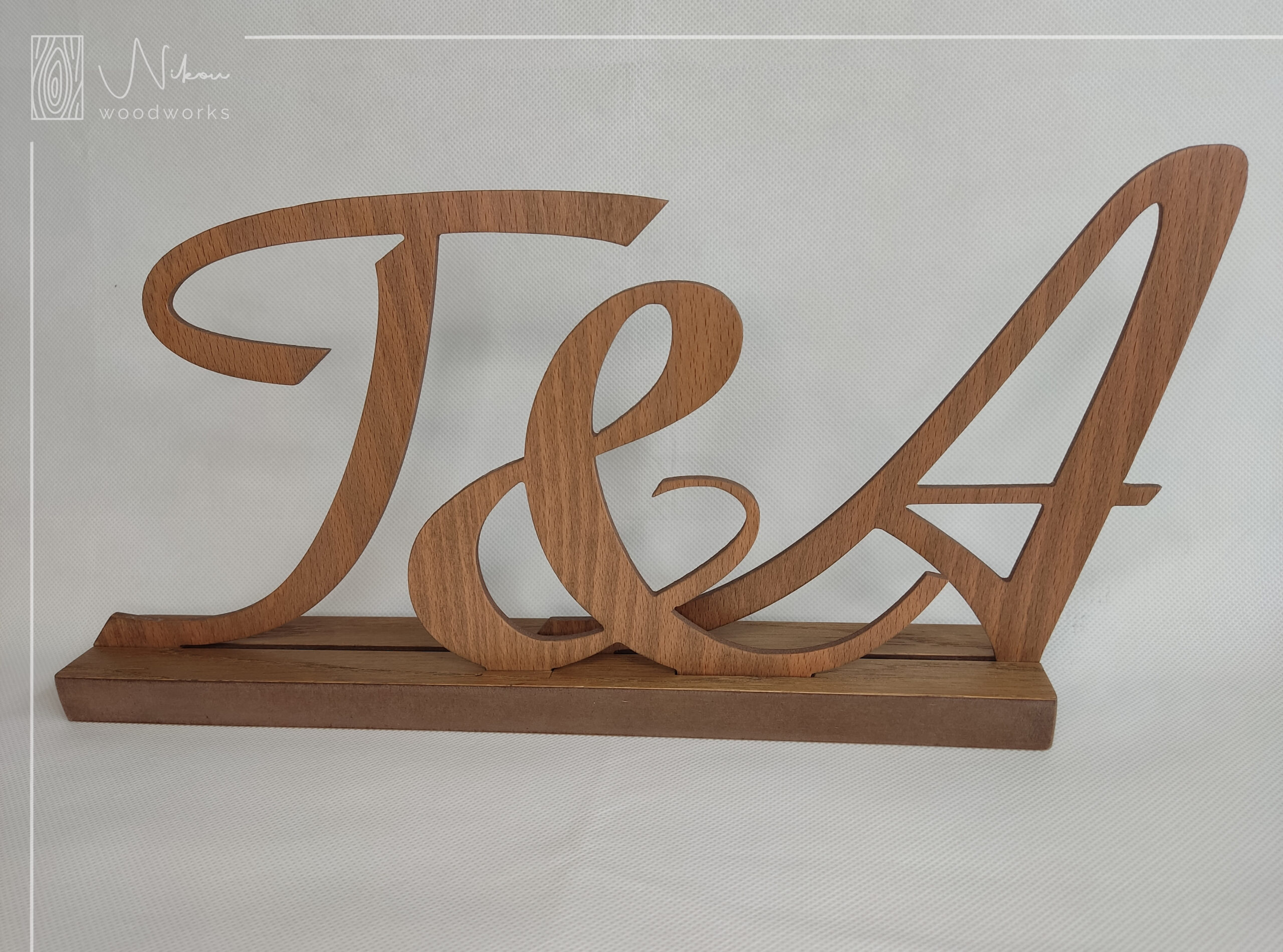 Ξύλινο επιτραπέζιο διακοσμητικό για το σπίτι και το στολισμό του γάμου σας, με τα αρχικά σε καλλιγραφική γραμματοσειρά.