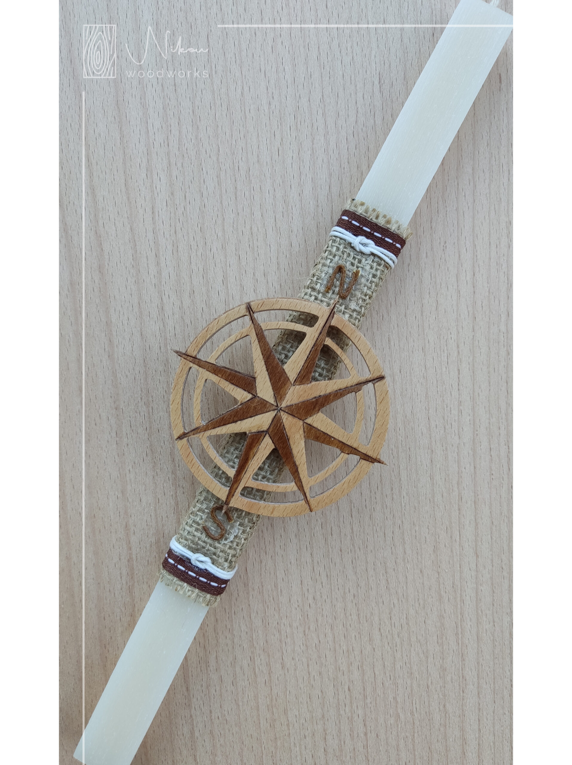 Λαμπάδα με ξύλινη πυξίδα σε διάφορες αποχρώσεις του ξύλου και όπως πάντα με μαγνητάκι στην πίσω πλευρά!