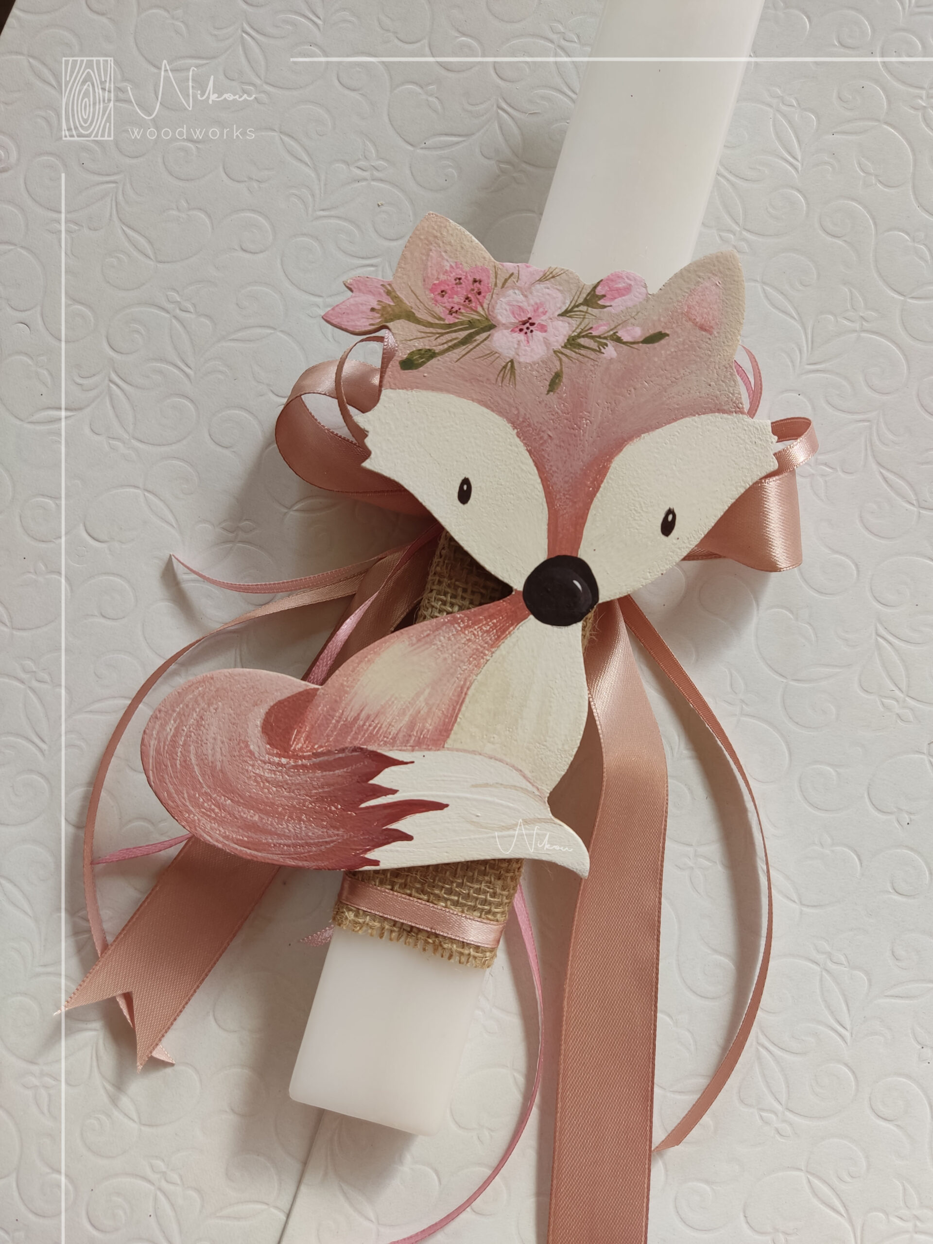 Χειροποίητη λαμπάδα αλεπού ζωγραφισμένη στο χέρι με μαγνητάκι στην πίσω πλευρά.