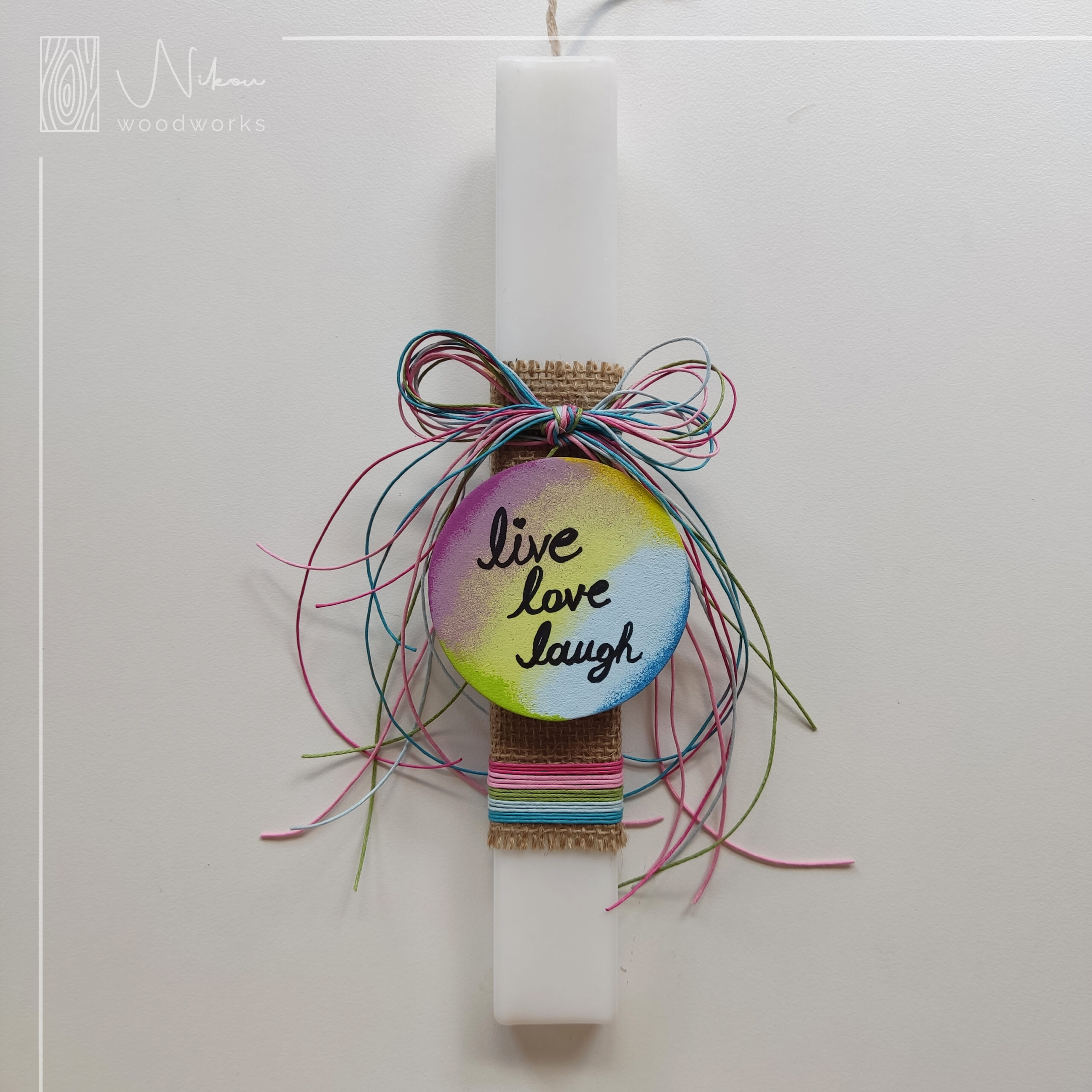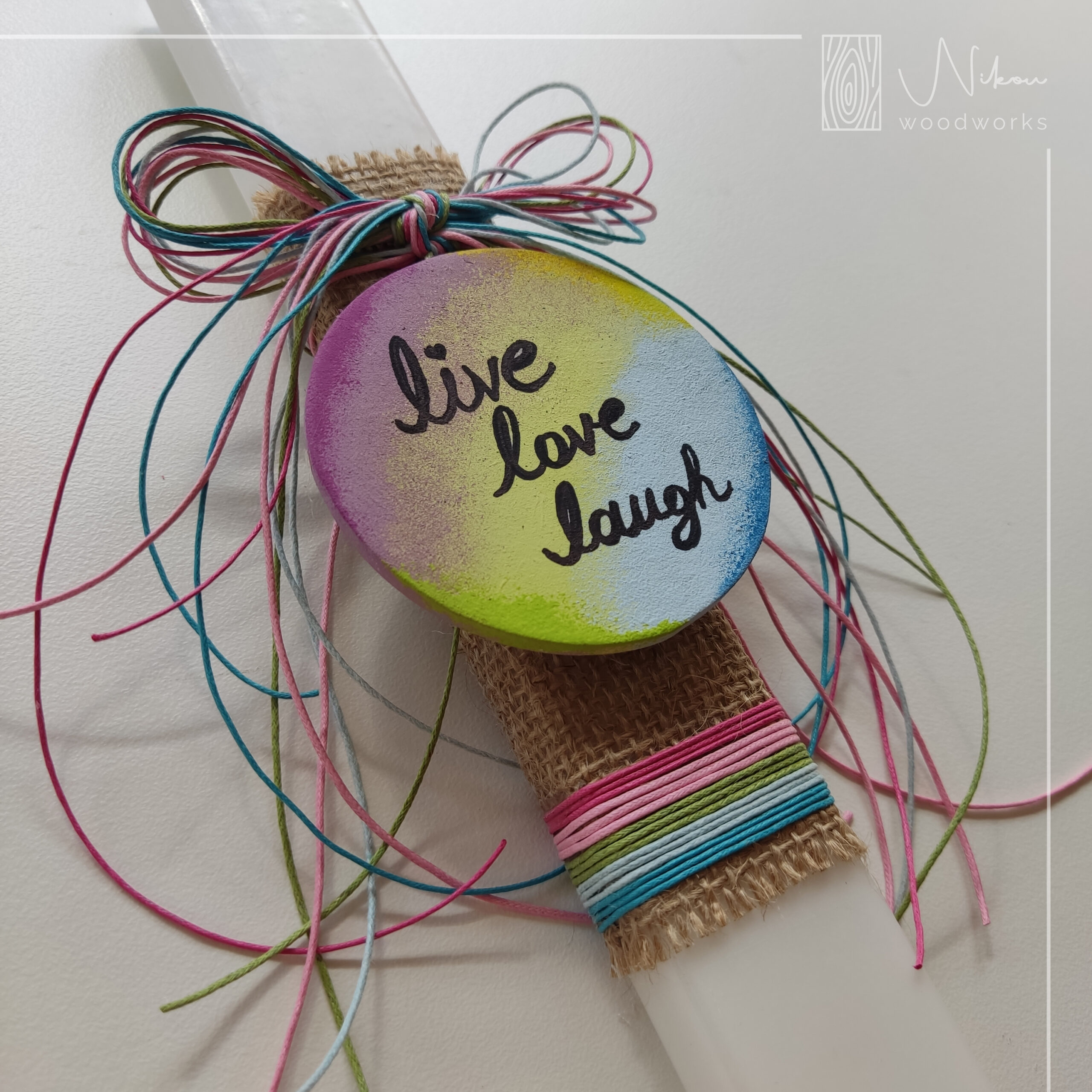 Μοναδική ξύλινη λαμπάδα “Love Live Laugh” (με μαγνητάκι) μας θυμίζει να γελάμε και να αγαπάμε κάθε μερα!!!