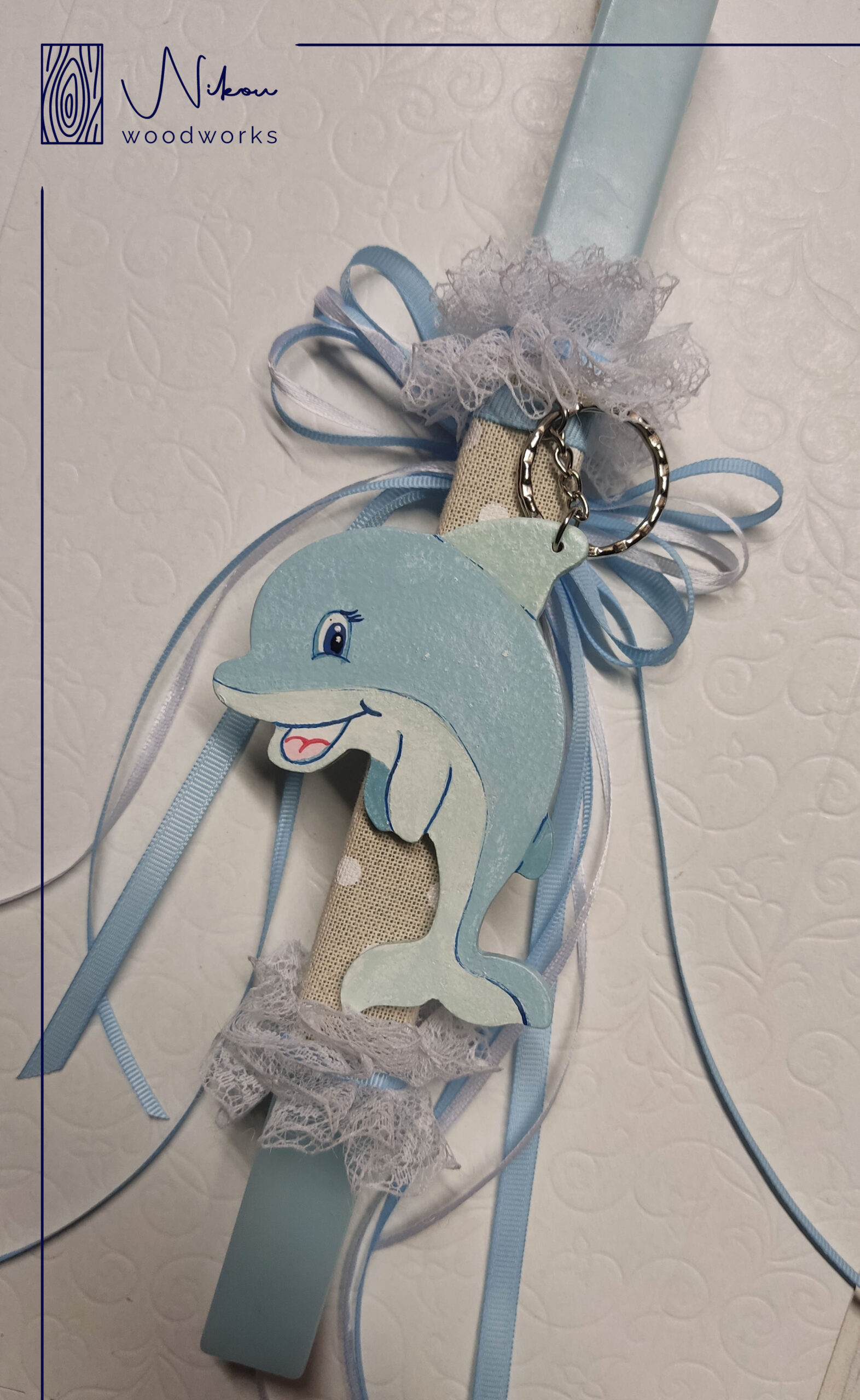 Λαμπάδα μπρελόκ με χειροποίητο χαριτωμένο δελφίνι (ζωγραφισμένο και από τις δύο όψεις).