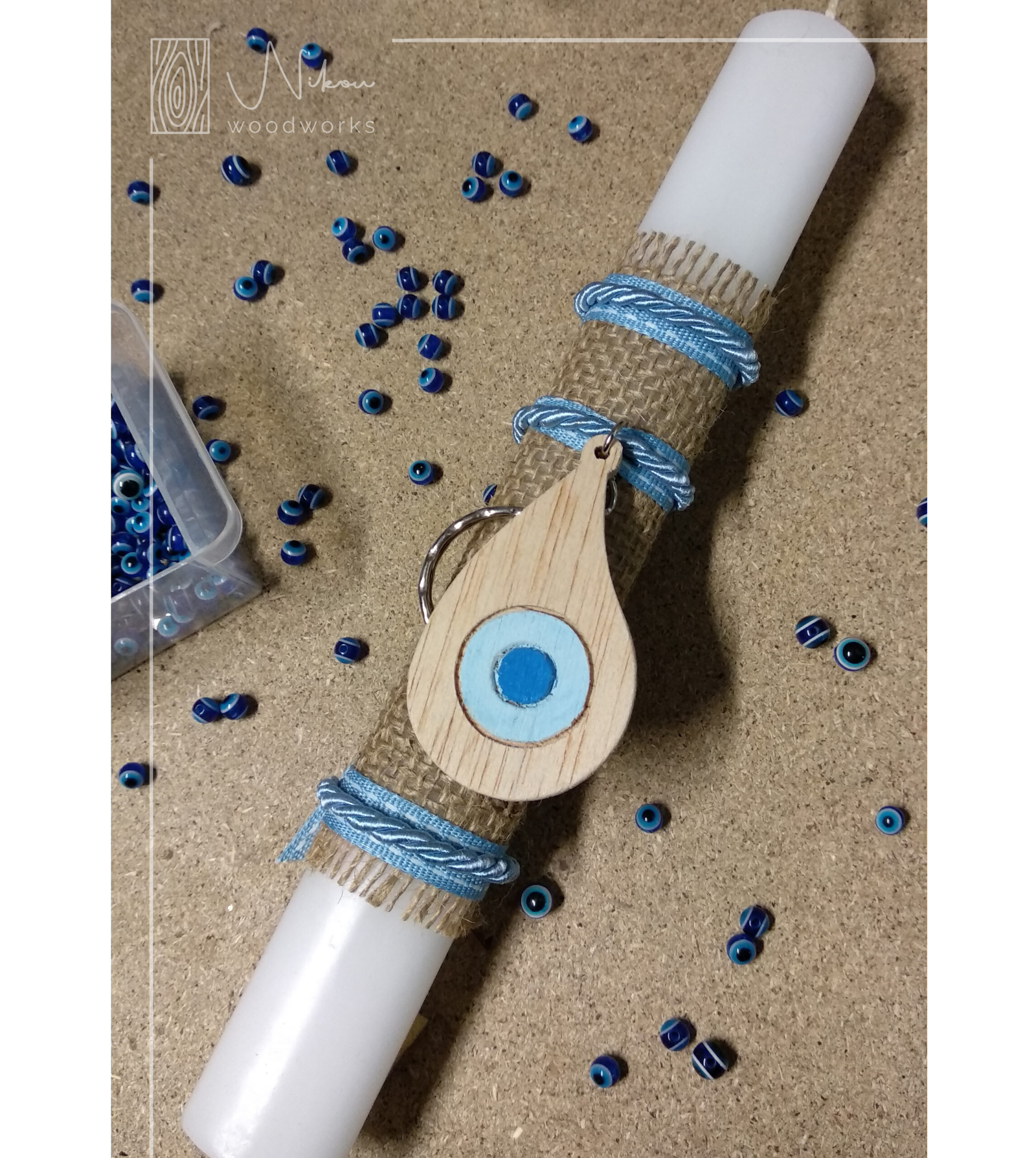 Χειροποίητη λαμπάδα με ξύλινο μπρελόκ ματάκι!