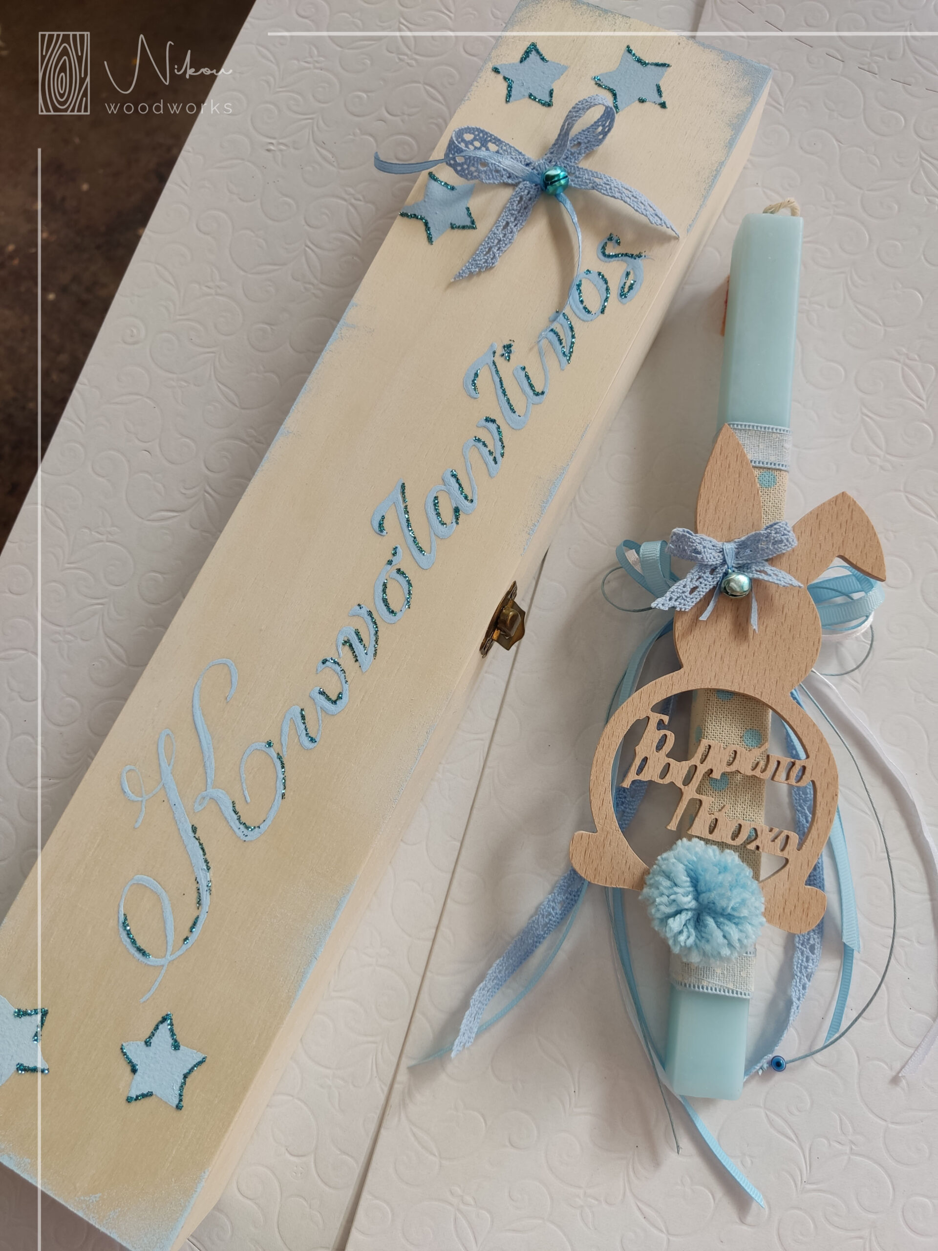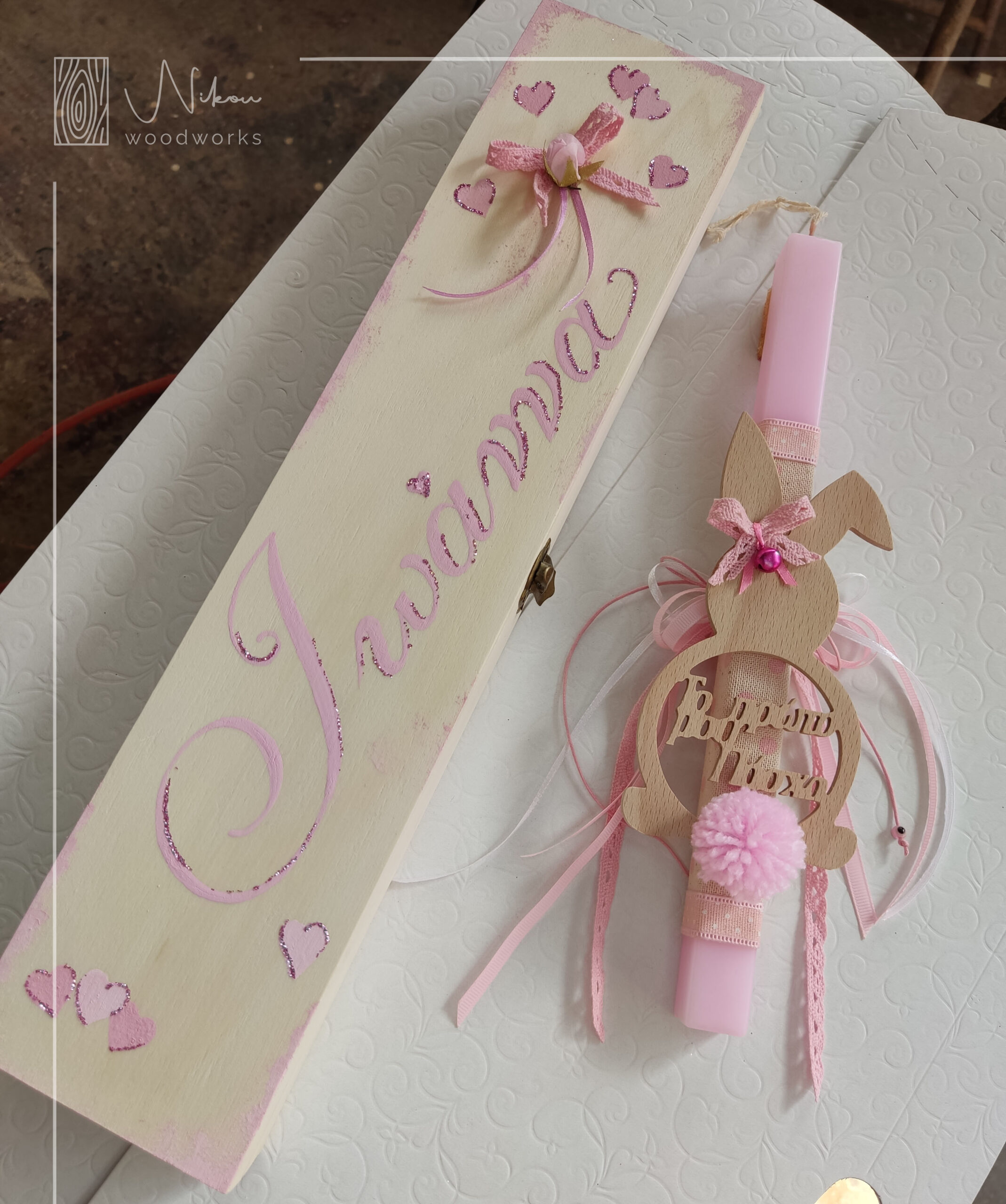 Χειροποίητο σετ λαμπάδα και ζωγραφισμένο κουτί λαμπάδας με το όνομα που θα επιλέξετε.